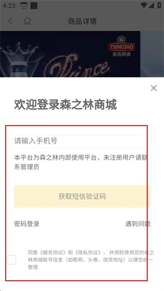 在登录页面填写手机号与验证码,勾选相关协议完成登录操作后,就能进行商品购买了。