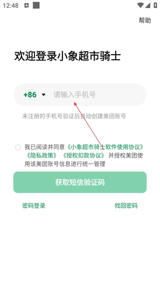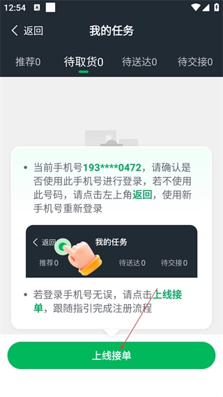 在登录界面输入手机号,勾选同意相关协议,登录成功后即可进入我的任务页面。