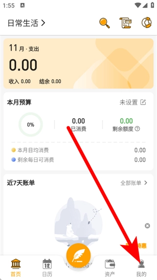 进入首页后,点击底部我的,进入我的页面。