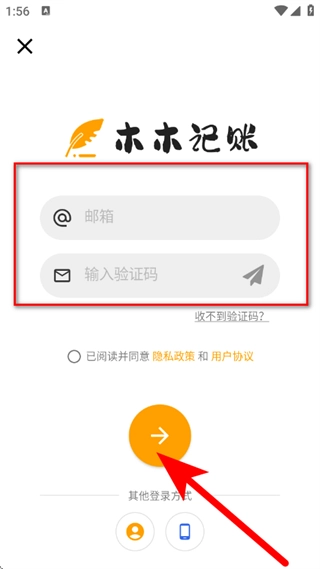 输入邮箱和验证码后,点击箭头,完成注册。