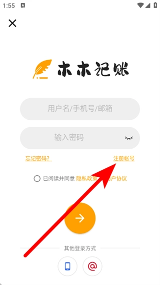 在登录页面,点击注册账号,进入注册页面。