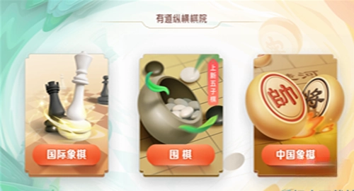 打开软件后,您会看到一个界面,其中包含国际象棋、围棋和中国象棋这三种棋类。