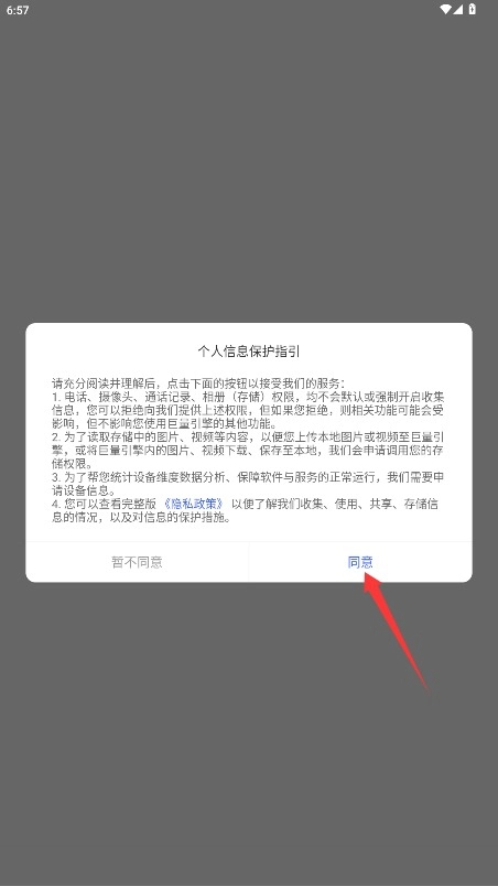 首次使用时,请仔细阅读平台的服务条款和隐私政策,确认无误后点击同意按钮即可进入应用。