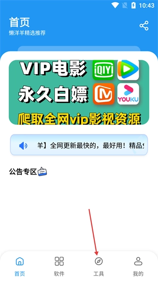 在该应用的首页,点击底部的【工具】选项,就能进入工具页面。