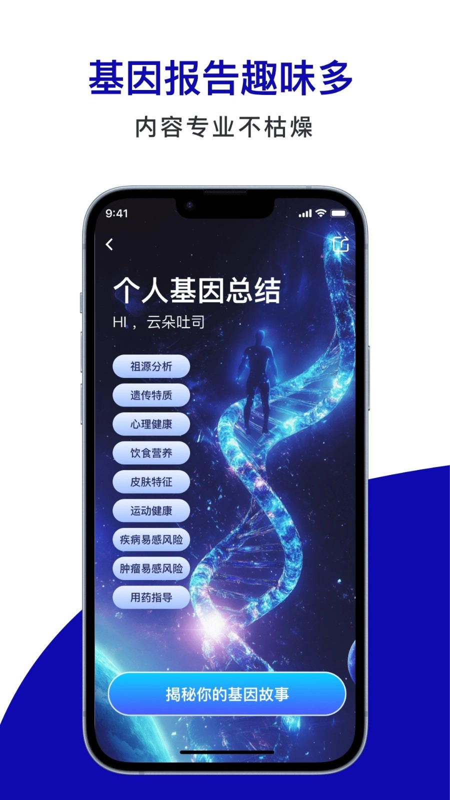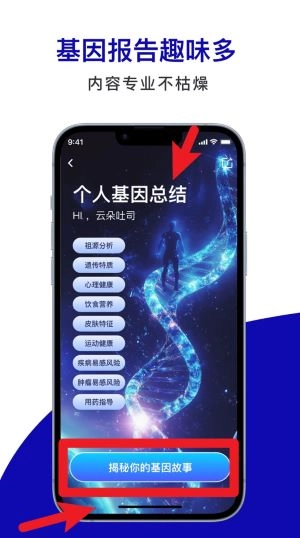在个人基因总结页面,点击“揭秘你的基因故事”即可查看完整的基因报告,内容专业详实且图文并茂,阅读体验生动不枯燥。