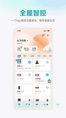 2、指定房间控制,一旦连接好家中设备,你可以随时对特定房间进行精准操控。