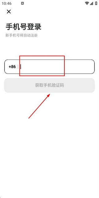 在手机号登录界面输入手机号后,点击获取验证码的按钮。