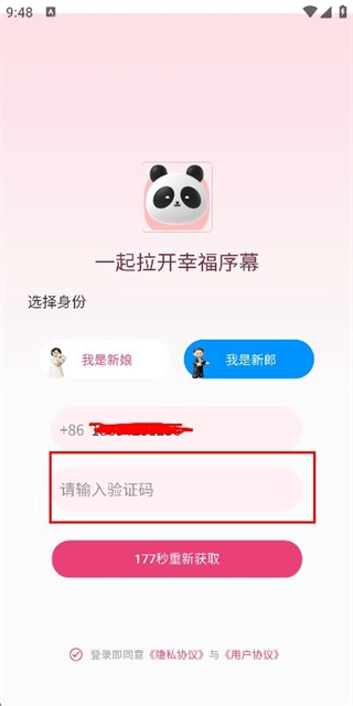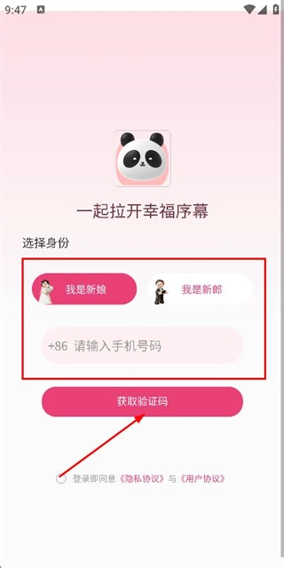 在登录页面选择身份、填写手机号,勾选协议后,点击获取验证码。