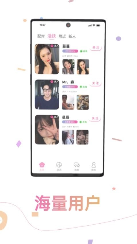 个性化推荐功能:此应用借助智能算法,依据用户的兴趣偏好、个人喜好以及日常行为模式,为其精准推送匹配的用户与活动,助力用户更迅速地结识志同道合的伙伴。