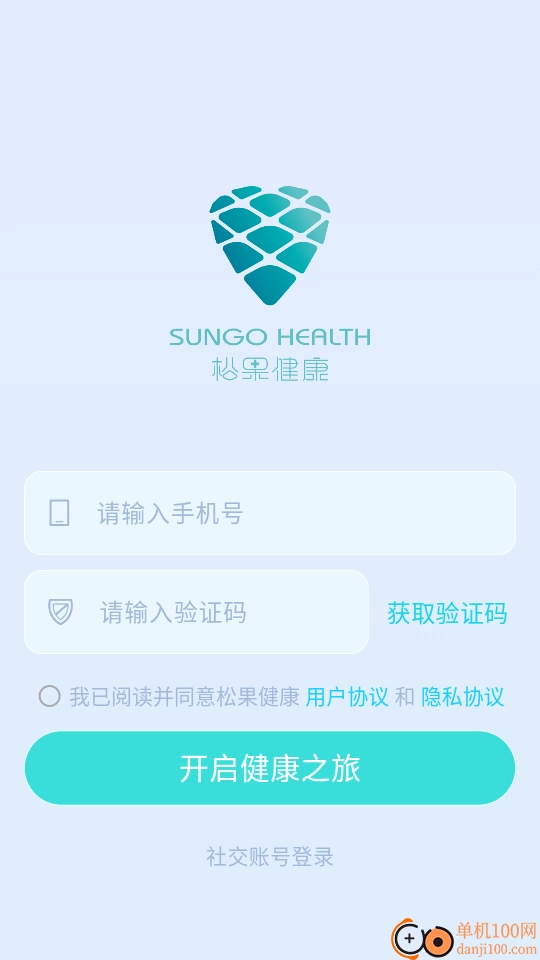 进入软件登录界面后,输入手机号与验证码,点击“开启健康之旅”按钮即可完成一键登录。