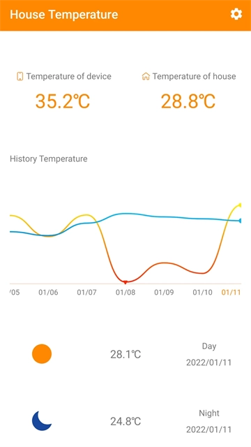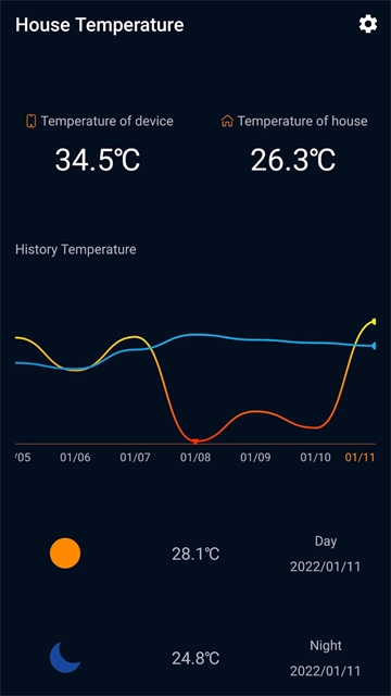 历史温度通常会在安装完成后的一到两天内,以线型图的形式呈现给用户。