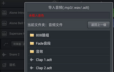 新建音频音轨时,系统会弹出导入音频的对话框。你可以先点击返回上一级按钮,找到手机中存储的音频文件,点击该文件即可开始导入。另外要说明的是,导入成功后软件会生成一个adt格式的音频数据缓存文件,后续若需再次加载该文件,直接打开这个缓存文件就能快速完成导入,操作十分便捷。