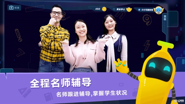 直播课程采用主讲老师在线授课的形式,同时配备班主任进行答疑与伴学服务,并借助AI技术达成1对1的智能互动辅导效果。