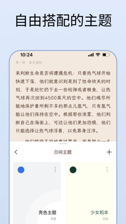 支持主题配置,以及多种字体、字号和背景的自定义设置