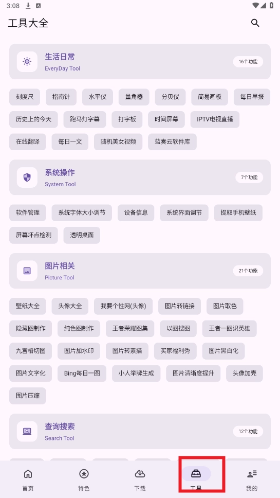 工具大全为用户整合了丰富的生活实用类、系统操作类以及图片相关的便捷小工具,所有工具均可点击后直接在线使用。