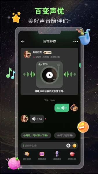 通过语音聊天,用声音缩短彼此的距离,聆听与你心灵契合的声音。