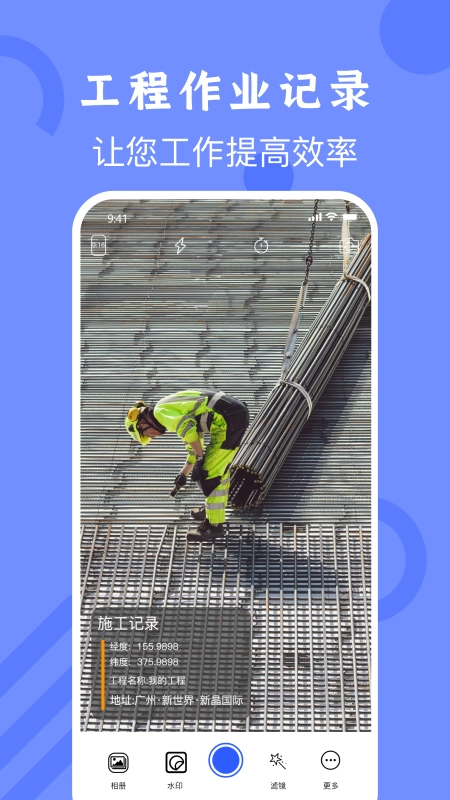工程随手拍是一款面向工程领域打造的智能拍照应用,核心目标是优化工作效率与照片管理的便捷程度。使用者能借助这款应用,不受时空限制地完成拍照操作,系统会自动附上时间、地点等水印标识,以此保障照片的真实属性与可追溯特性。无论是记录施工现场的推进情况、开展质量核查工作,还是进行日常的考勤签到,工程随手拍都能游刃有余地处理。该应用具备照片分类管理功能,用户可将工作场景的照片与私人生活照片区分整理,并且按照变更、返工、柱梁墙板等不同类别完成归档。除此之外,应用还配备了多种水印模板,用户能够依据实际需求自行编辑调整,从而适配不同场景的使用要求。工程随手拍既简化了工程照片的管理环节,又为用户带来了高效且便捷的拍照体验,堪称工程行业从业者的实用帮手。