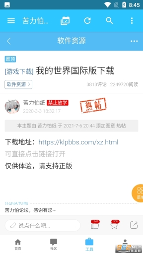 《苦力怕论坛》是一款十分实用的手机应用,用户可以通过它使用多种《我的世界》中的小工具,种类繁多,包含许多实用的素材和模组。用户可以免费体验这些功能,并且还能与其他《我的世界》玩家交流。快来加入吧!