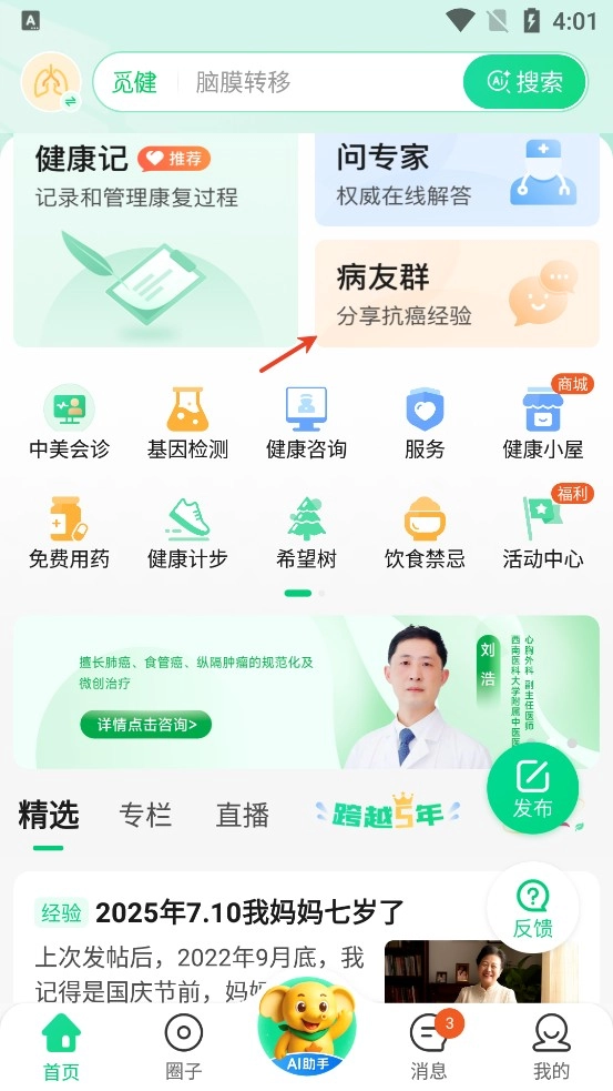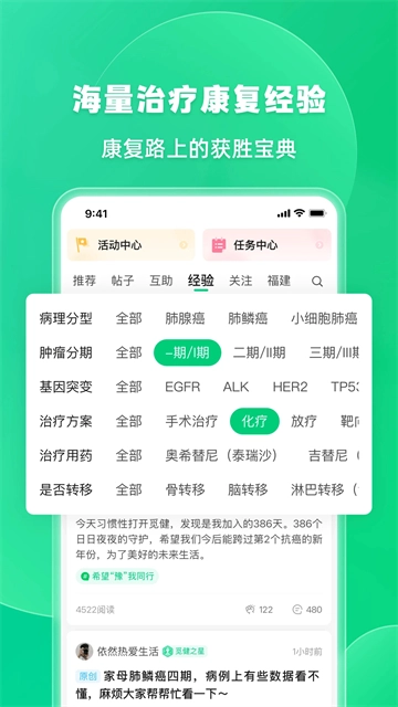 用户可以你在线与病友一起共享治疗经验;