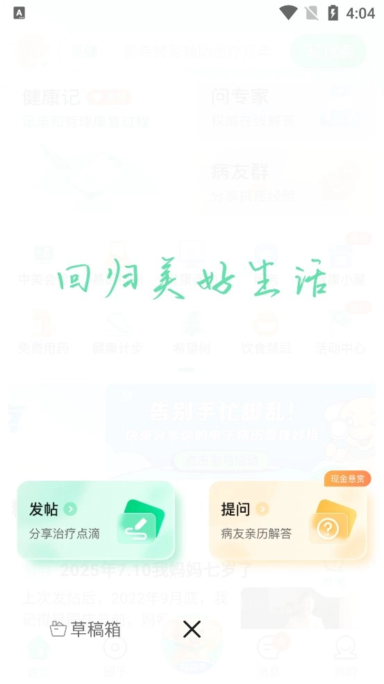 大家可以分享自己的生活日常、心情感受和康复过程中的经验,以此助力更多人重获健康。