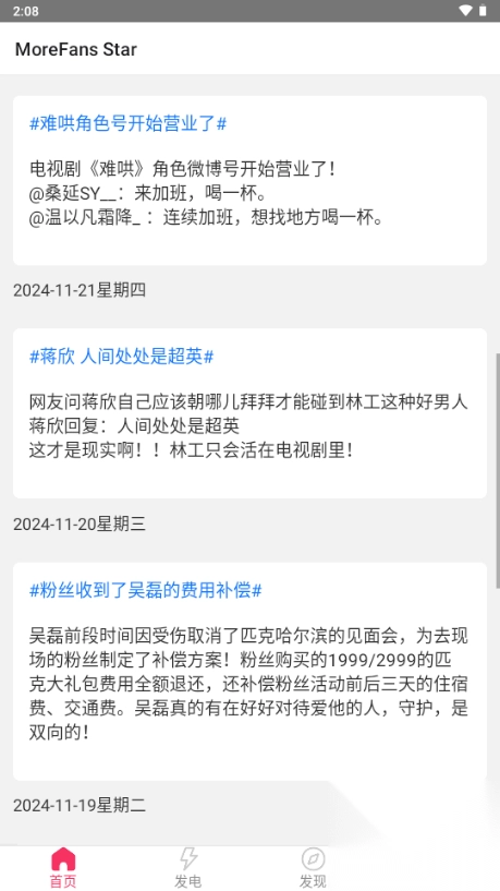 在主页找到“发电”栏目并点击进入。进入该栏目后,能浏览到各类明星爱豆的相关信息,用户可依据个人喜好挑选想要关注的爱豆。