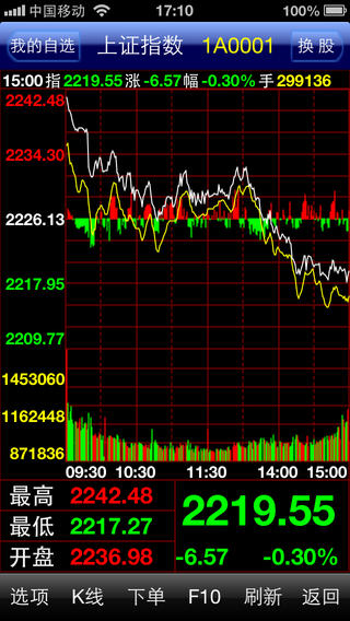 行情走势:分时走势,K线分析,分时图上显示每分钟的数据;数据实时同步刷新,卫星行情直达。