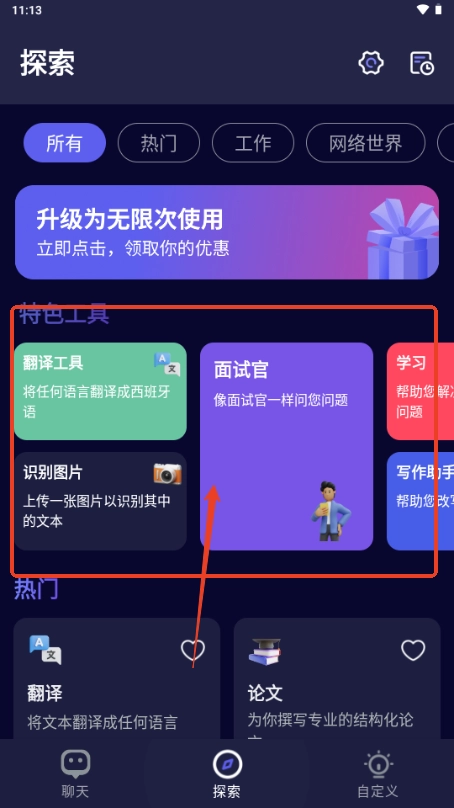 选择探索功能,这里也可以生成一些非常不错的工具;