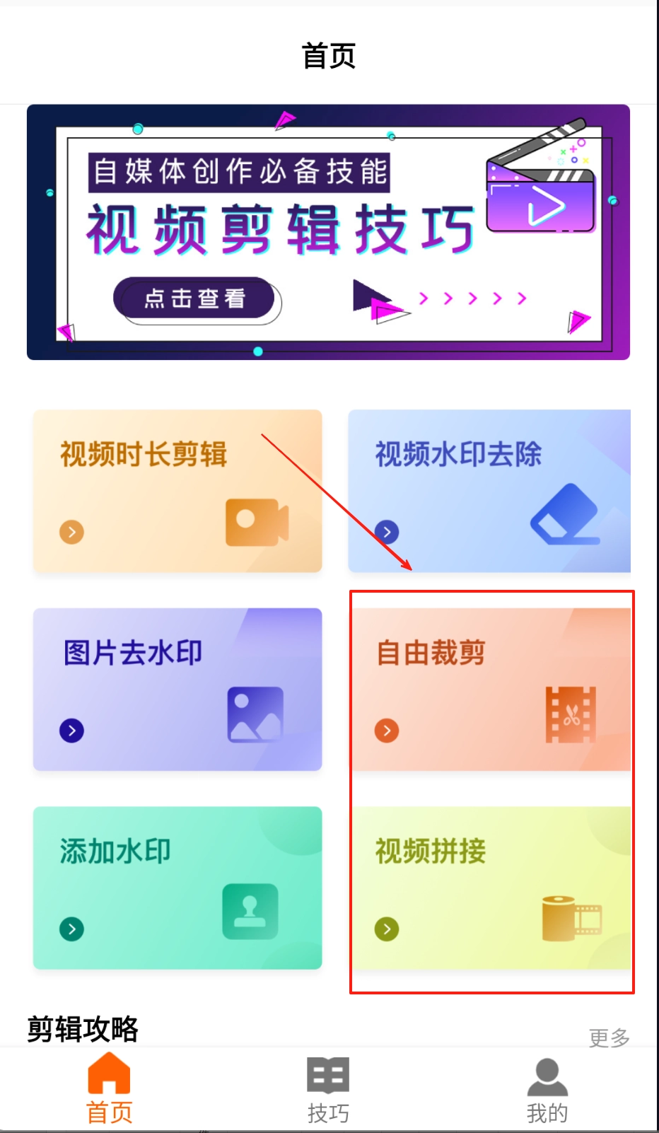 在编辑面板中使用滤镜、裁剪、拼接等辅助工具,并参考教程学习进阶的创作技巧。