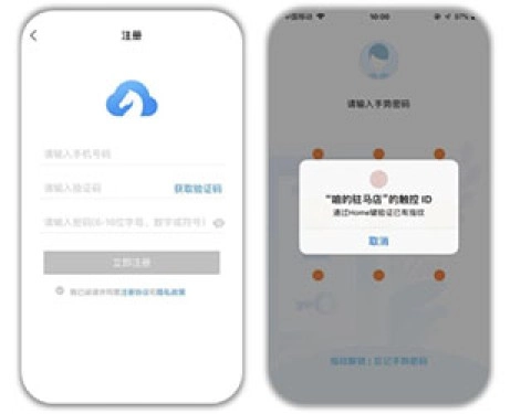 ④ 手机注册完成后,随即进入手势设置页面,设置手势密码或指纹解锁,点击“保存”即可完成操作。