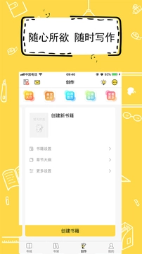 首先打开软件,进入后点击底部菜单栏中间的“创作”选项,切换到创作页面,接着点击页面里的“新建书籍”按钮。