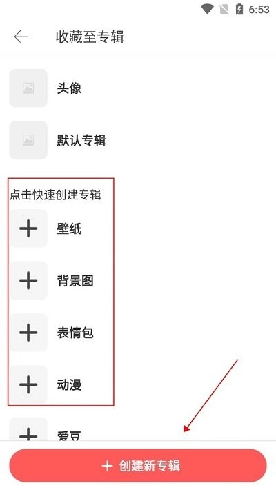 5、在收藏至专辑界面,用户可以选择把发布的内容放入任意专辑中,选择完成,点击底下的创建新专辑即可完成内容发布