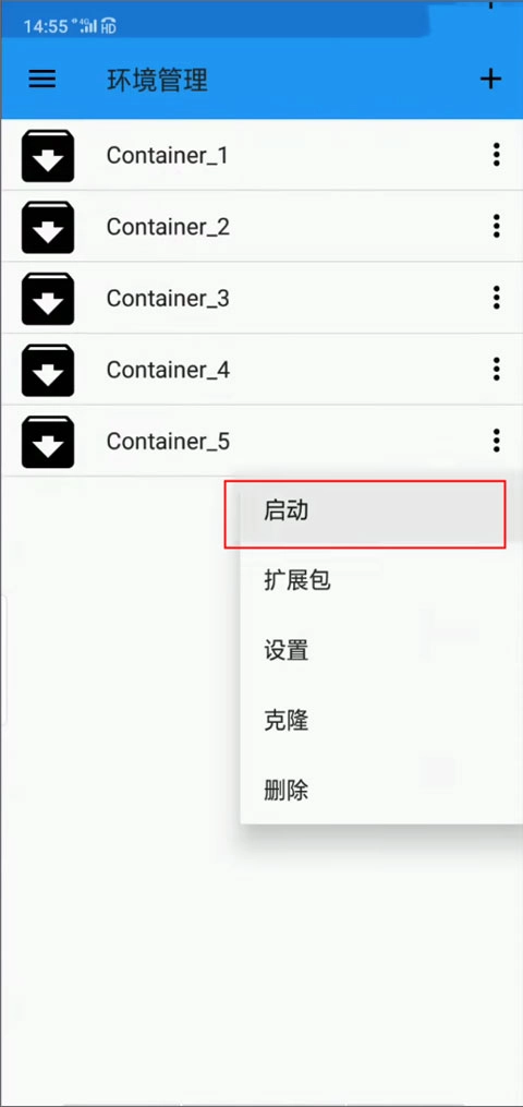 完成设置后重启模拟器,进入模拟器界面后,点击左上角的三横线图标,选择环境管理选项,再点击右上角的“+”按钮。