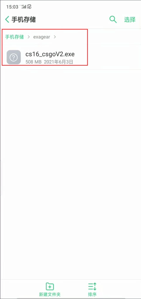 你可以在自己手机的文件管理器里,新建一个文件夹,并将其命名为“exagear”。