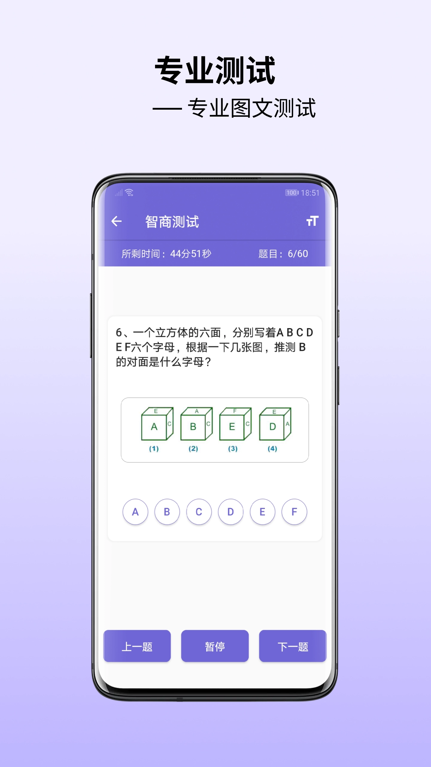 《智商测试》软件最新免费版是一款专门用于智力评估与训练的工具。它运用先进算法及丰富题库资源,借助一系列问题与任务,全方位评估用户的智力水平。不管是学生、职场人士还是老年人,都能通过这款软件知晓自身智力状况,并找到提升智力的途径。软件界面设计简洁清晰,用户友好度高。无论您是否有计算机操作经验,都可轻松上手使用。软件支持多种语言,便于全球用户使用。此外,我们还提供了详细的操作指南和客服支持,保证用户在使用过程中获得及时的帮助与解答。