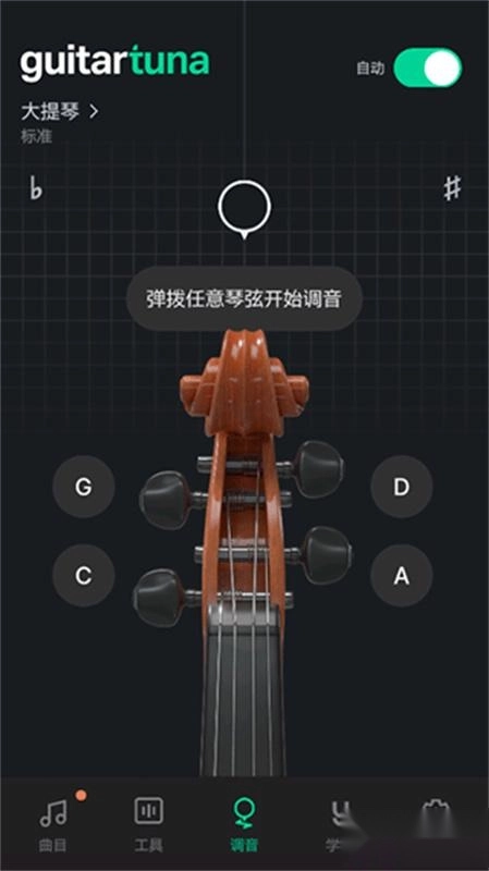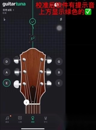 拨动对应的琴弦,显示负数提示调高,需要扭紧琴弦