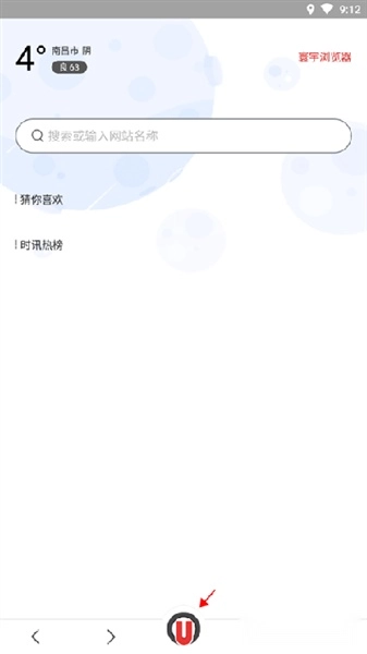 打开浏览器,进入主页,然后点击最下面中间的u。