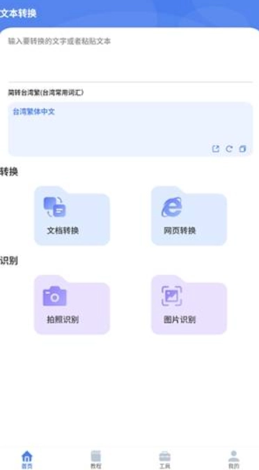繁体字识别界面简洁大方,板块分区明确,你可以很轻松找到自己想要的功能,你还可以借助它将pdf格式文件转换成自己想要的文档文件,非常实用的小功能。