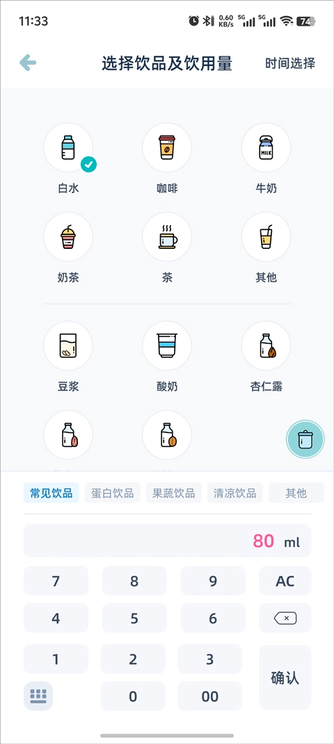 提供多种饮品选择,满足不同用户需求,方便记录。