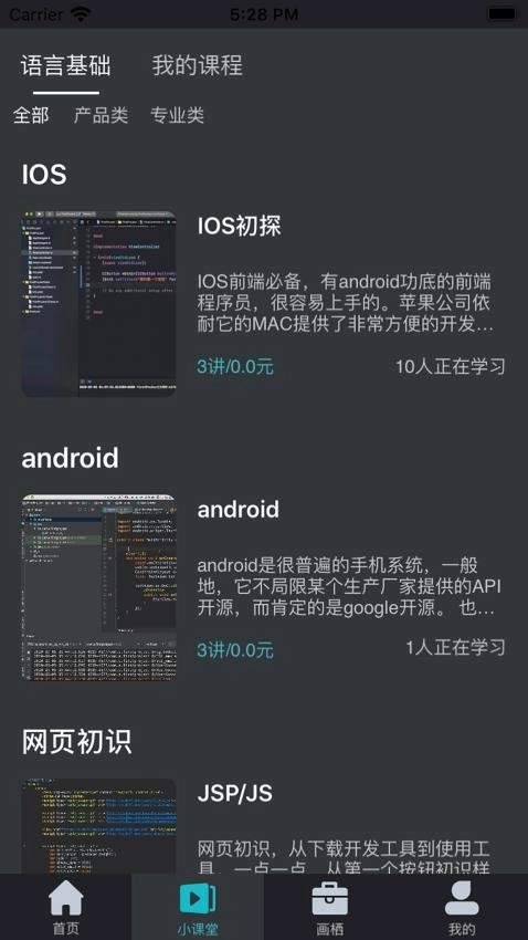 这款掌上学习软件灵活自由,ios、Android及网页入门等各类知识都能在线学习。