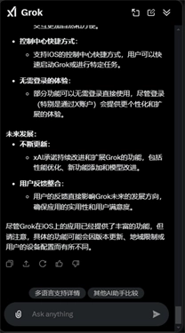 grok中文版让每位用户都能轻松体验人工智能带来的便捷,无论是学习、工作还是娱乐场景,用户都能找到适配的应用方式。