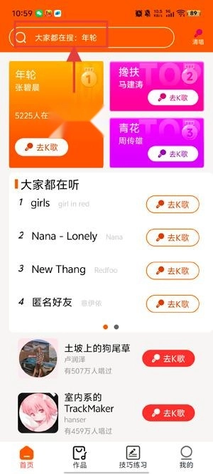 在搜索界面输入想要搜的歌曲,点击搜索。