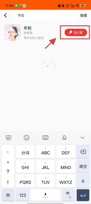 在搜索结果界面点击演唱,开启进行演唱。