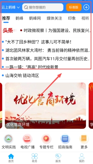 安装完成后,打开云上鹤峰应用,用户能够在首页查看最新的头条新闻和推荐文章,从而及时了解当地的重要事件。