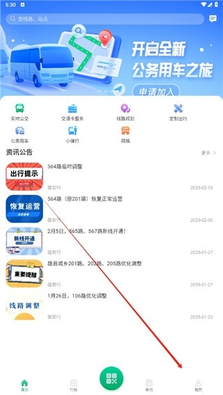 打开软件后,在首页图片所在的位置找到并点击“实时公交”选项,即可进入对应的界面。