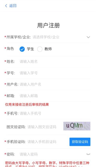 还没有账户的小伙伴,可点击“立即注册”,选择学生或老师的角色,填写基本信息与手机号完成注册。