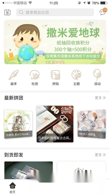 撒米是专为手账爱好者、团购团长与设计师打造的平台,融合了拼米、原创、社团、发现与分享等功能,聚焦手账文化领域;品牌秉持“为原创撒米”的理念,旨在为用户带来新颖的购物体验和独特的社交服务;通过串联设计师、团长与爱好者群体,助力原创设计兑现价值,增强手账创作的趣味性与品质感;让原创绽放光彩、设计被更多人看见,平台上的原创作品总能触动人心;拼米拼卷带来愉悦的购物体验,这里已然成为手账玩家囤积胶带的核心阵地。