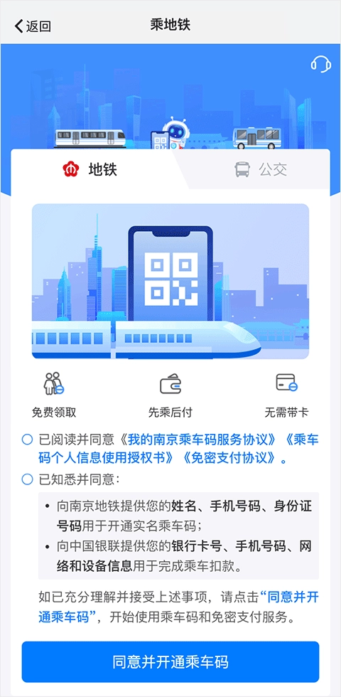 已经开通“钱包”功能的用户,进入页面后按照引导步骤就能直接开通乘车码。