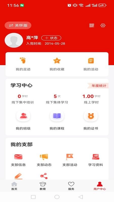 可以在教育服务中心获取各类党建教育学习资源,开展在线学习。