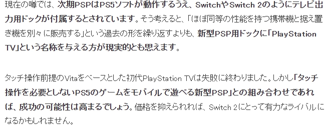 那么原本的触摸操作特长的PS Vita以及TV版的主要功能都极有可能集成到新型PSP上,而且也很可行且实用。