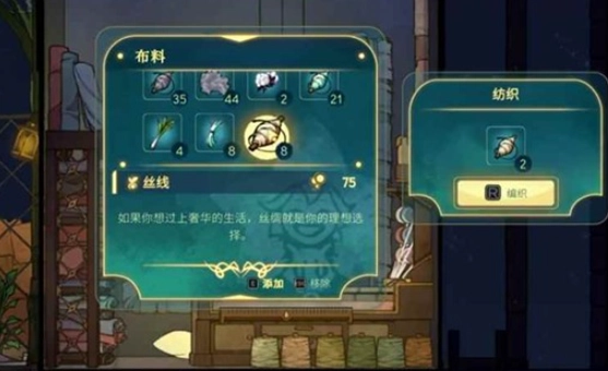 当玩家收集到足量的丝绸纤维后,就能开启织布厂的加工环节了。在心灵渡船的游戏设定里,织布厂会先把丝绸纤维加工成丝线,接着再将其织造成最终的丝绸布。到这里,从寻觅种子到收获成品的完整流程就全部走完了。